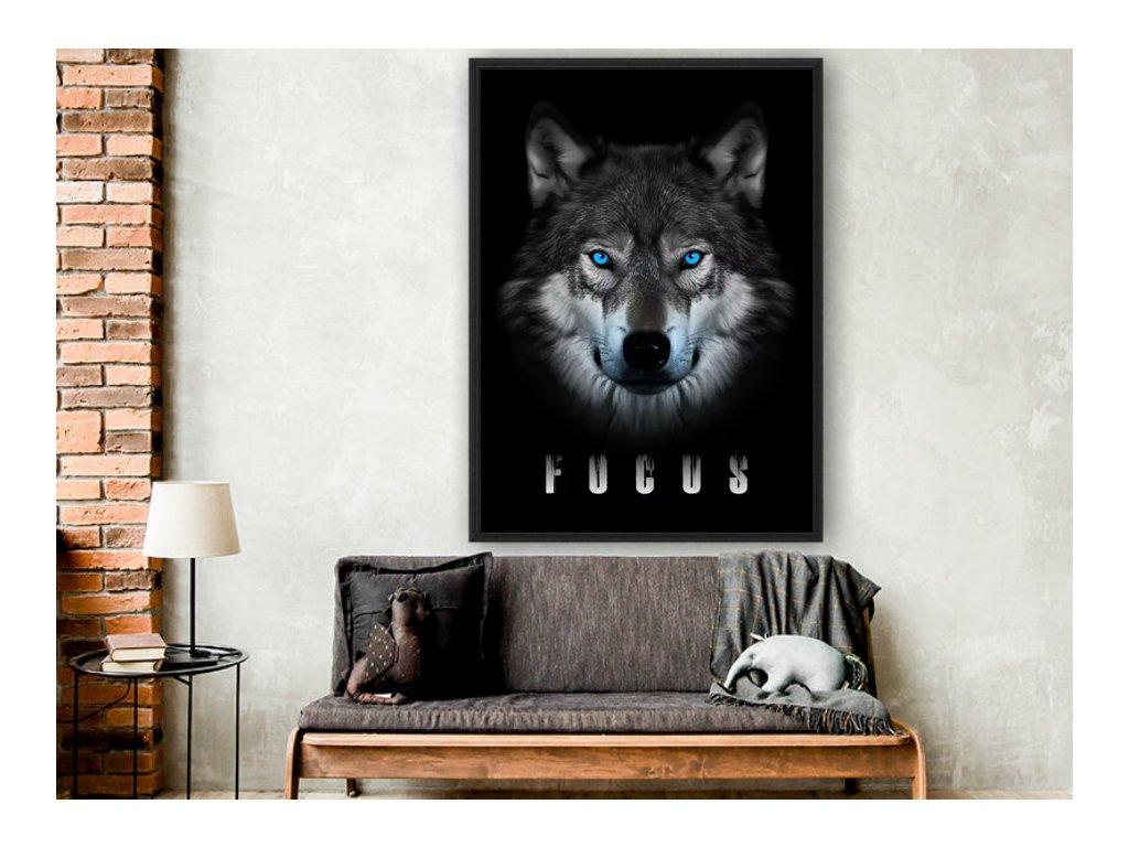 Silný, tajemný a působivý. Tento obraz s vlkem a výrazným nápisem "FOCUS" přináší do prostoru energii koncentrace, síly a vnitřního klidu. Pohled ledově modrých očí vlka připomíná, jak důležité je zůstat soustředěný na svůj cíl, nenechat se rozptylovat a věřit vlastnímu instinktu.